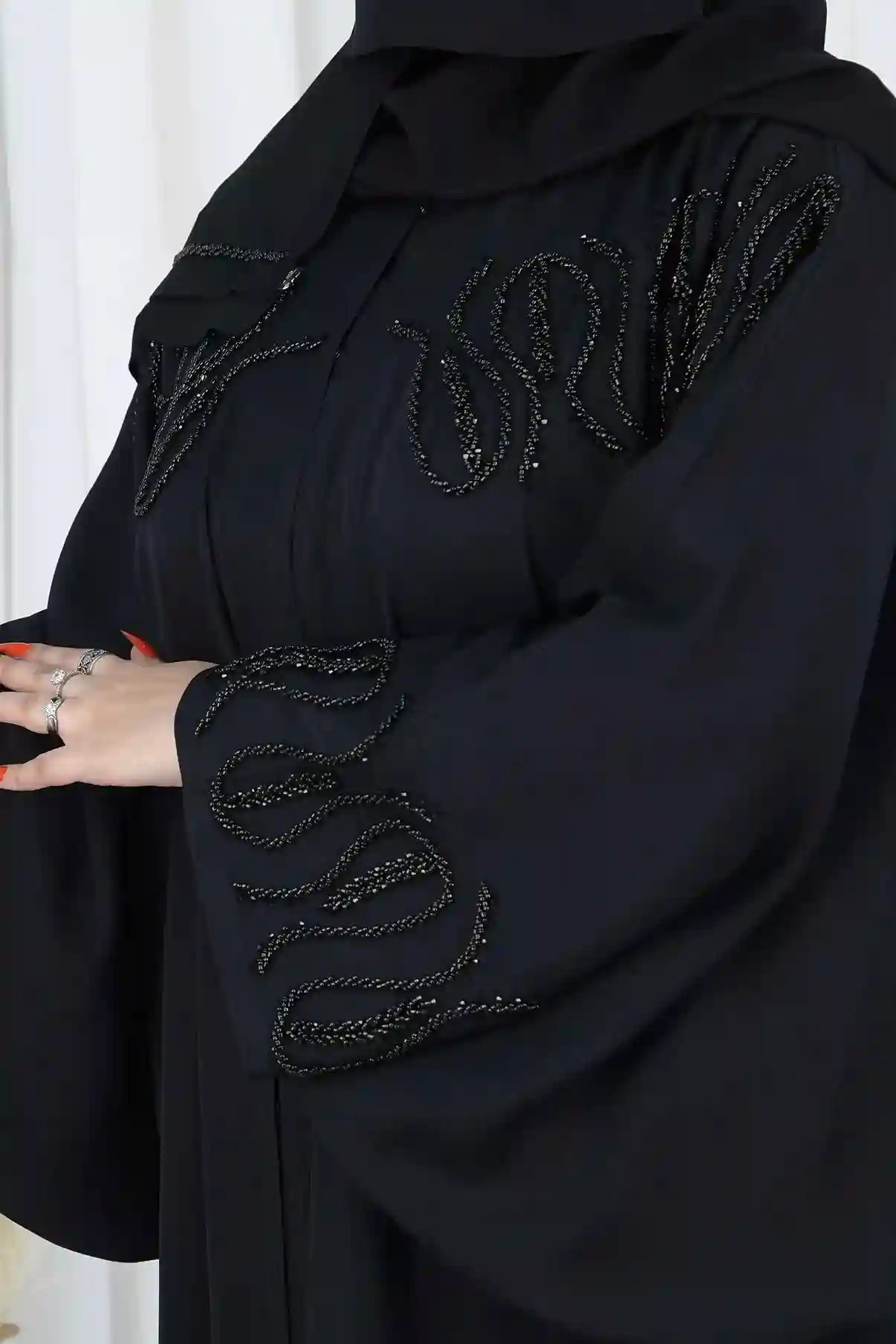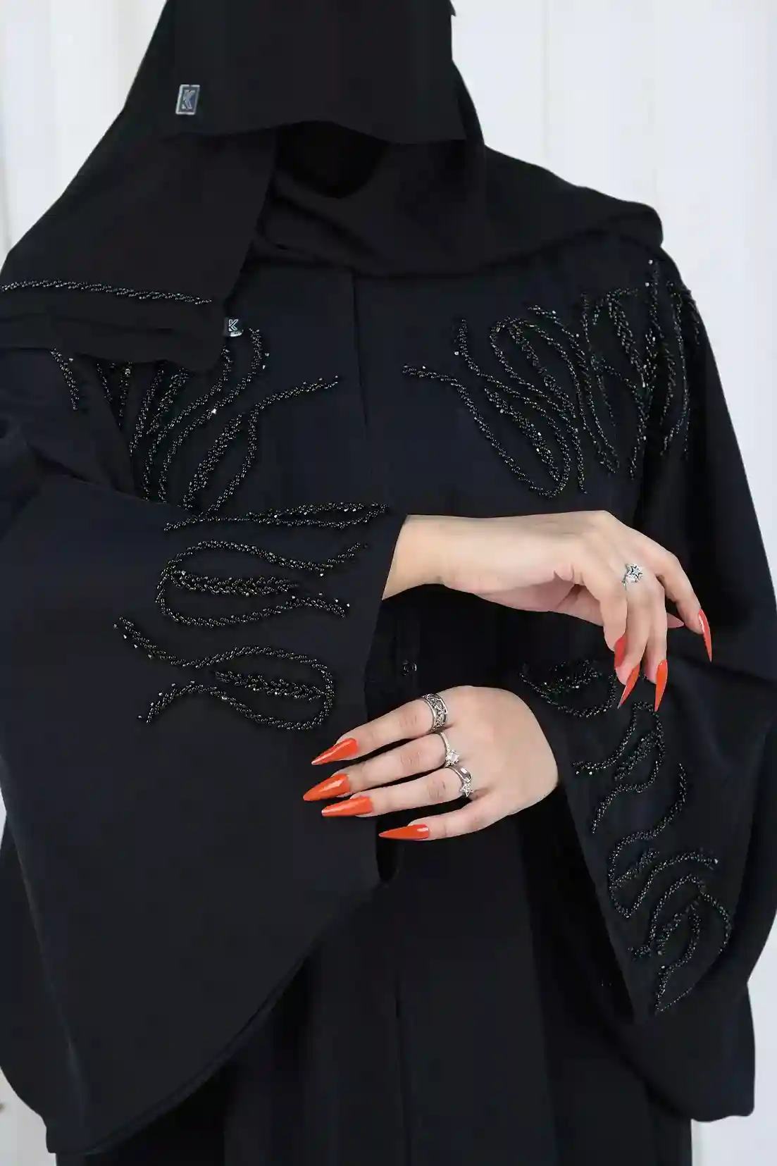 Description: The "Queen's Beaded" abaya features elegant beaded embroidery on the sleeves and shoulders, adding a touch of luxury and modesty. Its modest design makes it perfect for special occasions. Wear it to always look radiant!