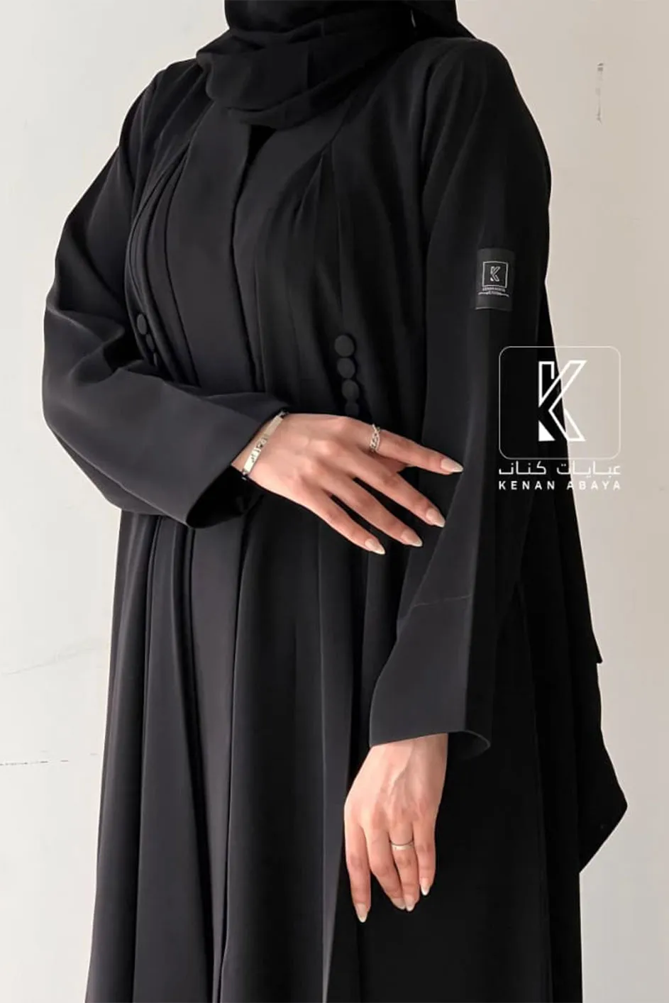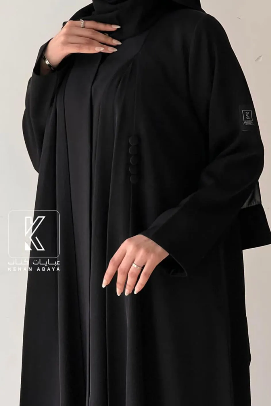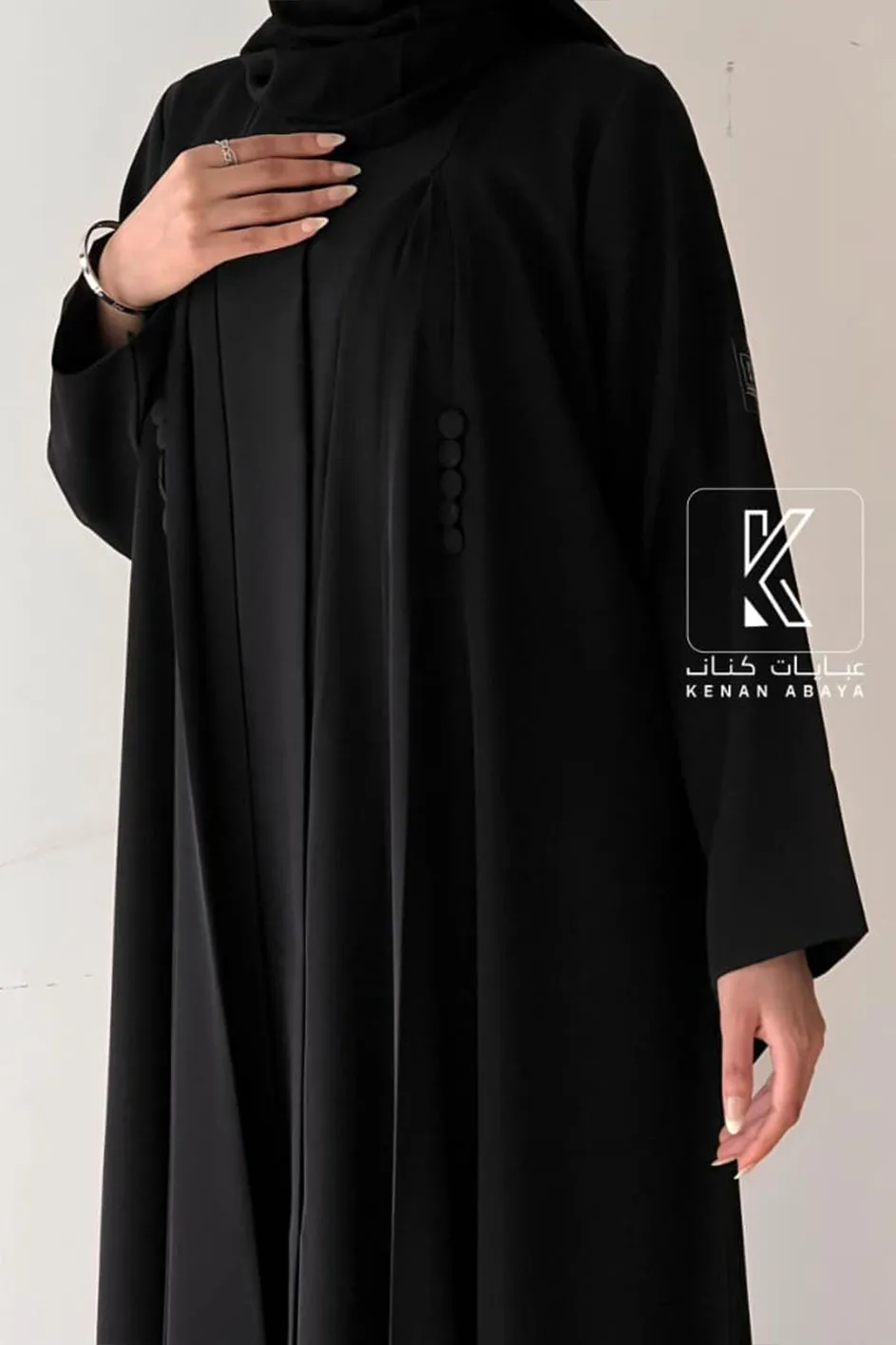 🔹 التفاصيل: زرارات سوداء جانبية للزينة على الصدر