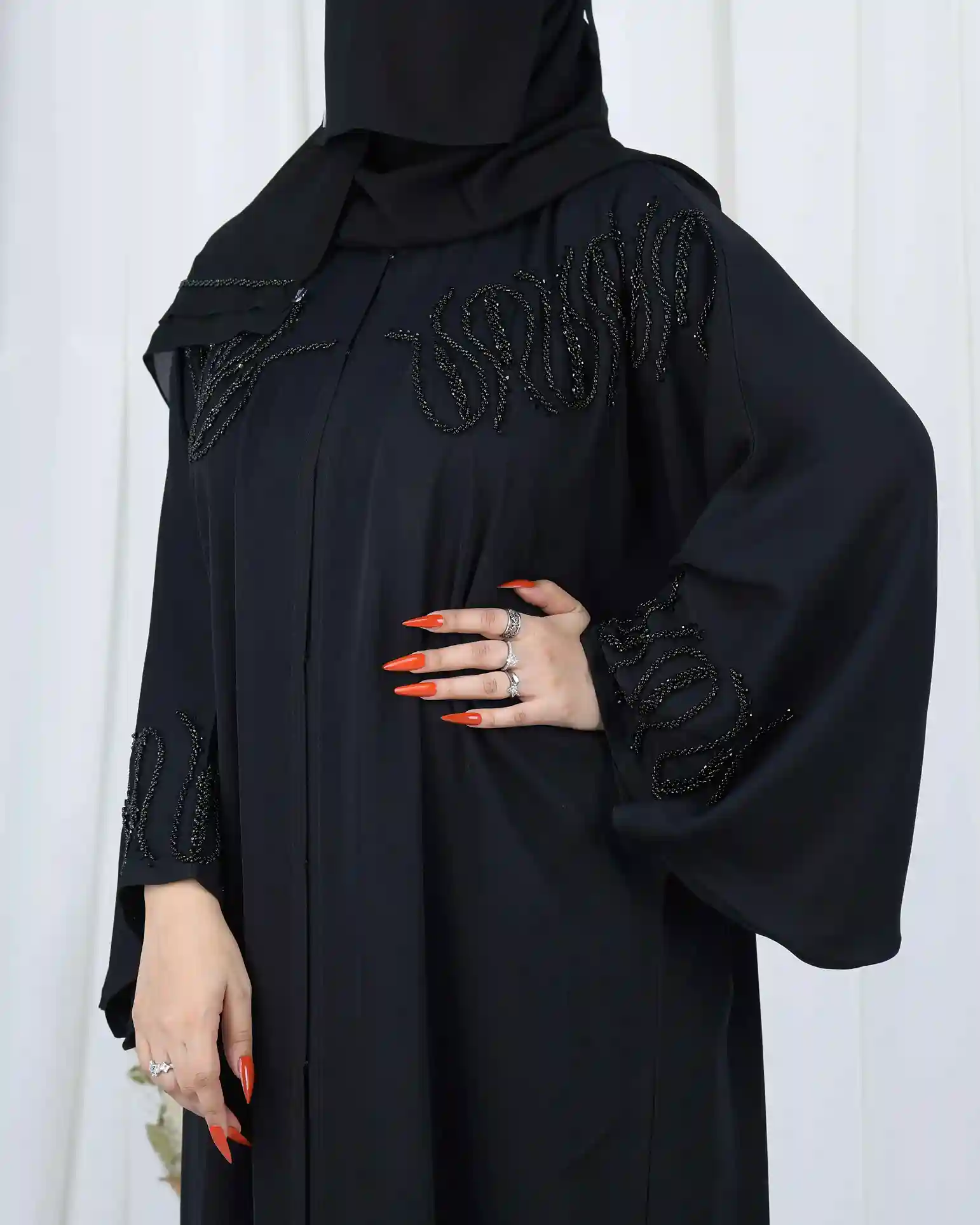Description: The "Queen's Beaded" abaya features elegant beaded embroidery on the sleeves and shoulders, adding a touch of luxury and modesty. Its modest design makes it perfect for special occasions. Wear it to always look radiant!