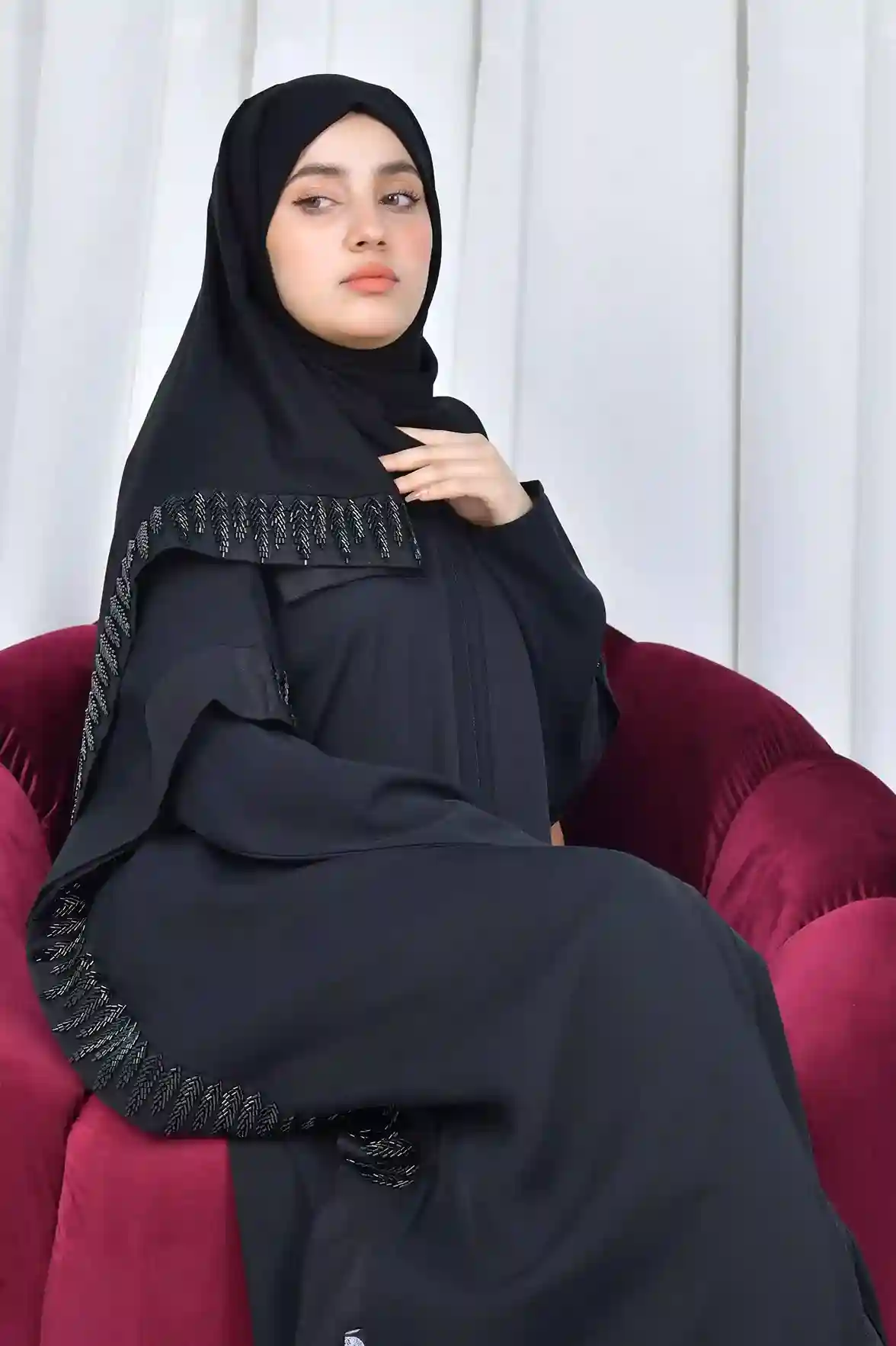 Description: The "Sundas To" Abaya reflects luxury and femininity with its sophisticated elegance, where colors and details harmonize to create a magical visual