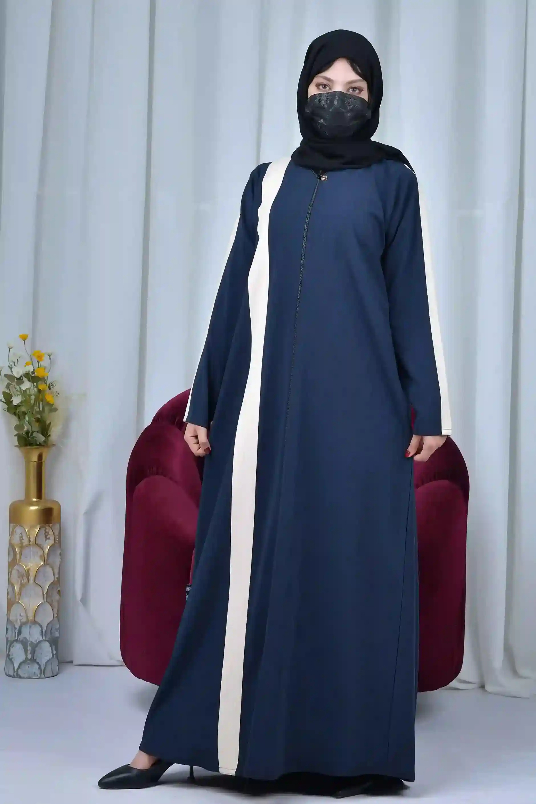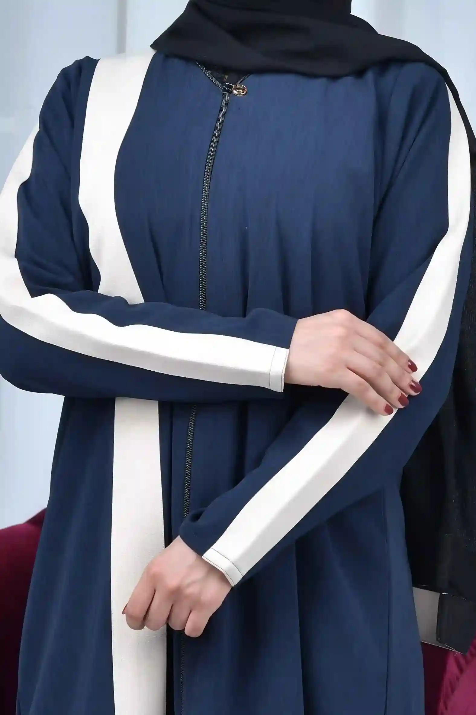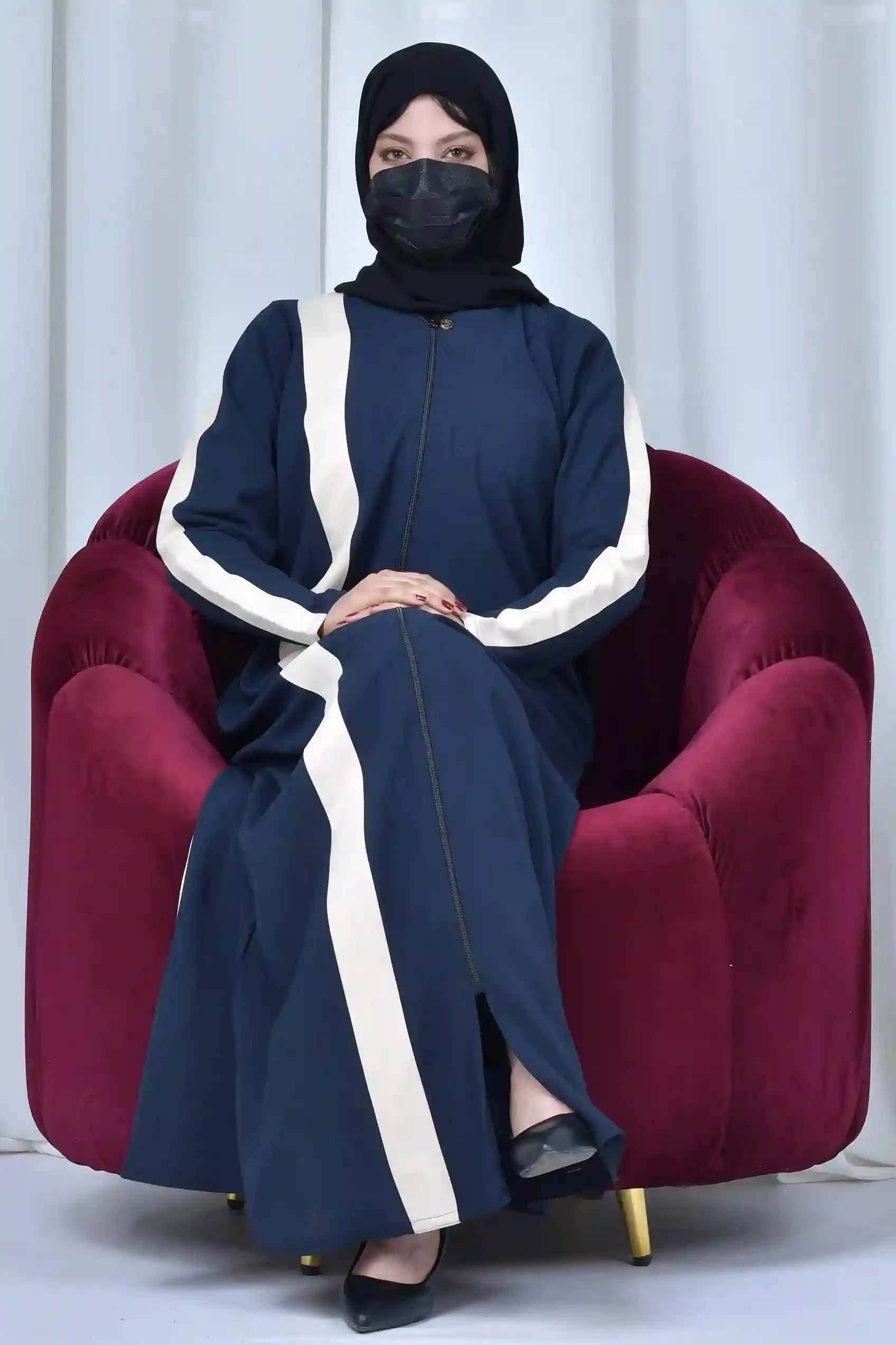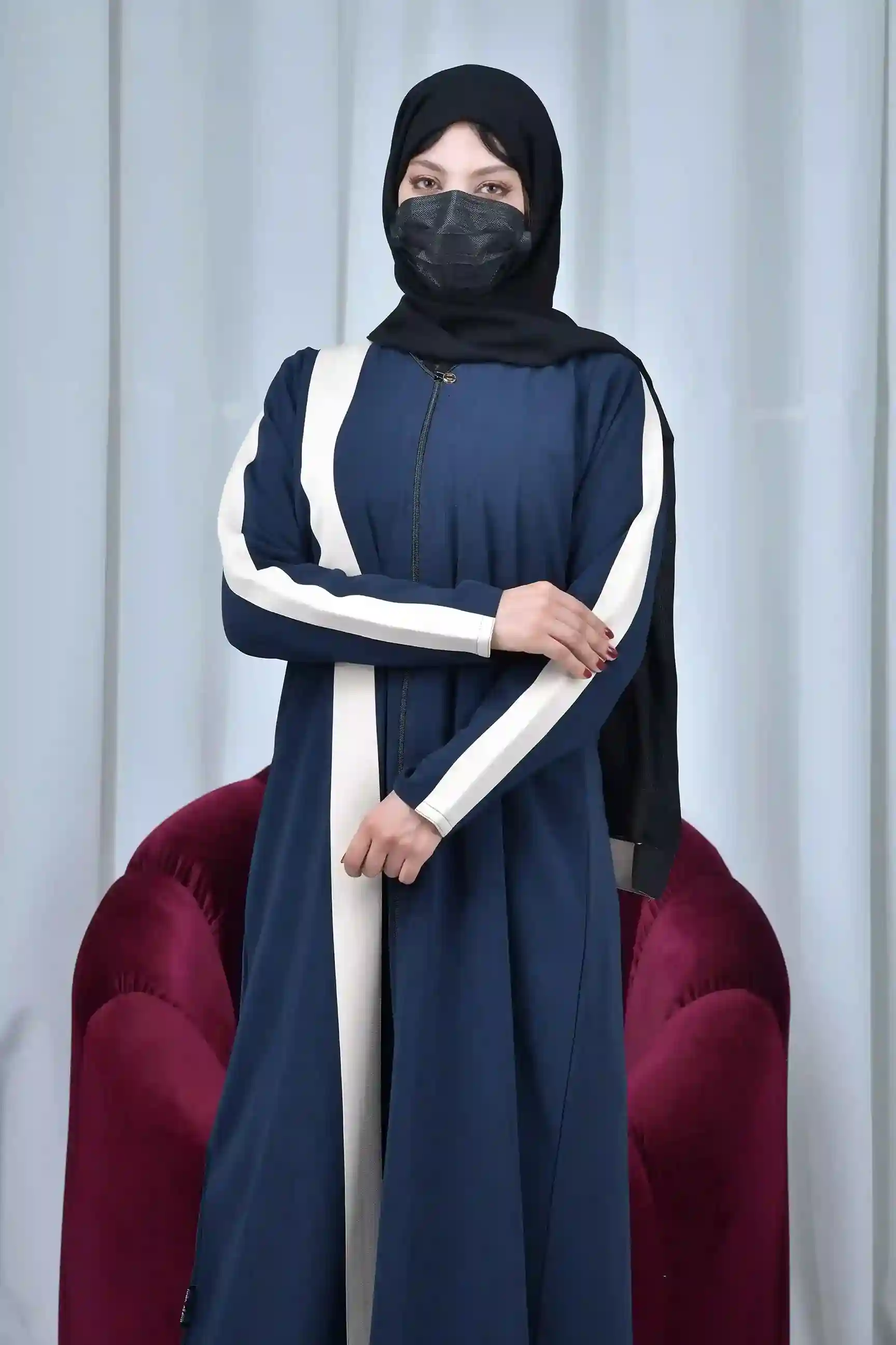 This abaya features a stylish and elegant youthful design, distinguished by its classic cut and the addition of embellishments along the length and sleeves in colors that harmonize with the abaya's main color.